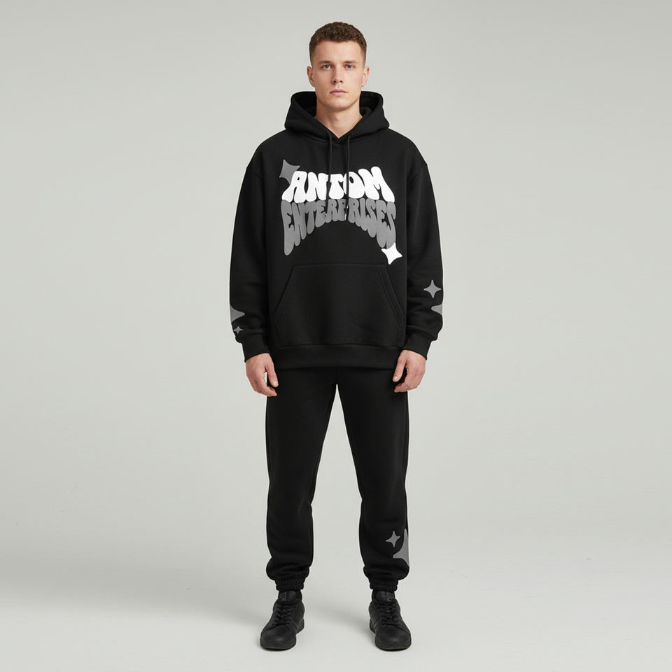 Puff Print Custom Logo High Quality Flared Sweatpants And Hoodie Set Sports Tracksuits Thermal Set Jogging Fleece Tracksuits