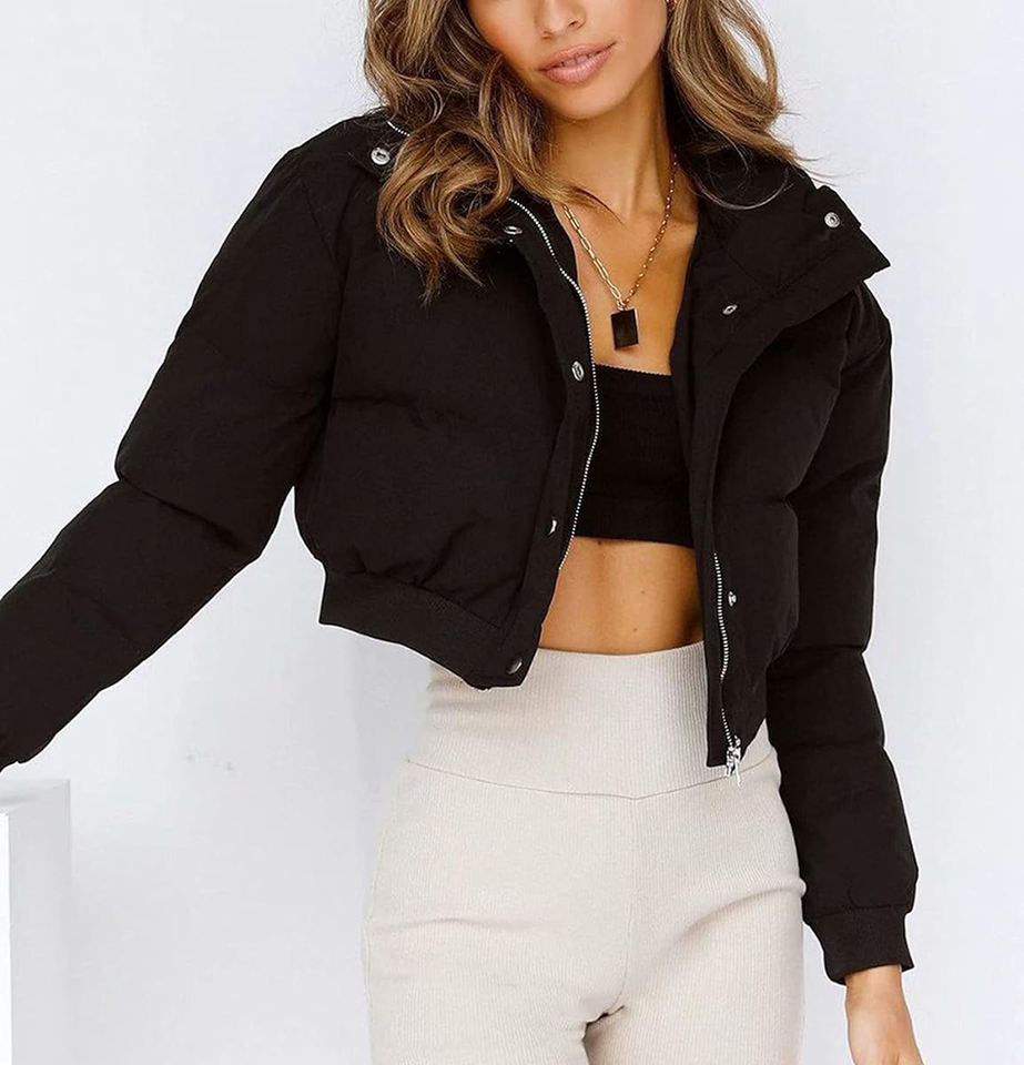 Puffer Jacket Crop Top Embroidered for Women Cold Weather Jacket With Full Customization on Trending Crop Puffer Jacket