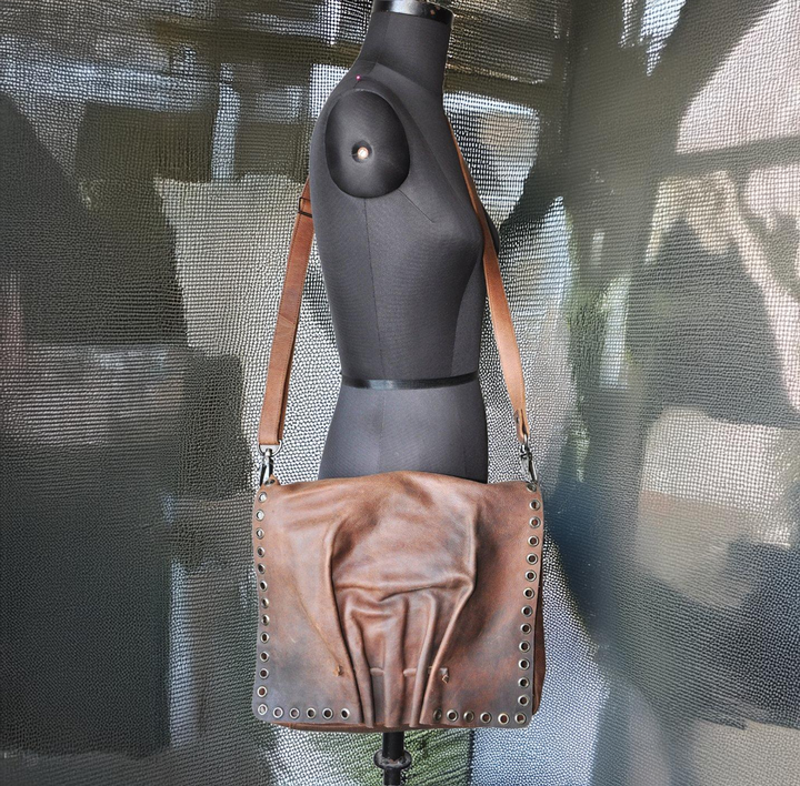 Vintage Style Men's Messenger Laptop Bag Pugmark Genuine Leather and Canvas Fashionable Vintage Style