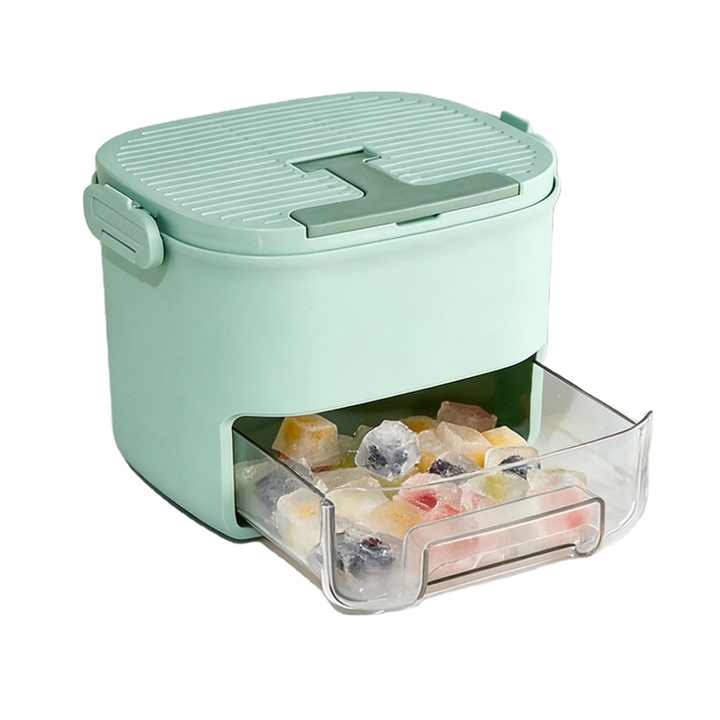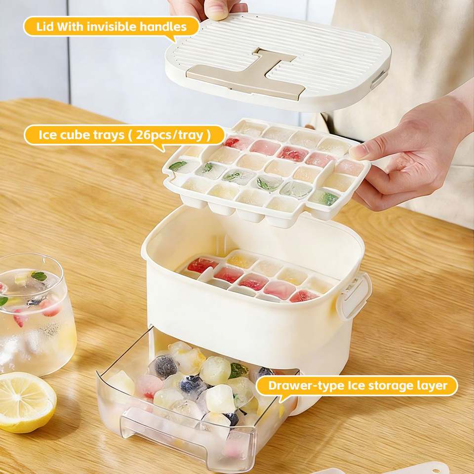 Pull-Out Ice Storage Drawer,Ice Cube Tray with Lid & Storage Bin, Ice Mold Ice Maker for Freezer with 2 Trays Easy Release Molds
