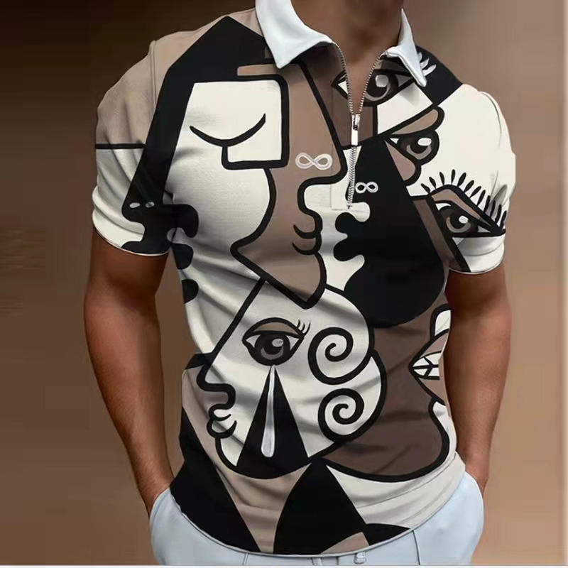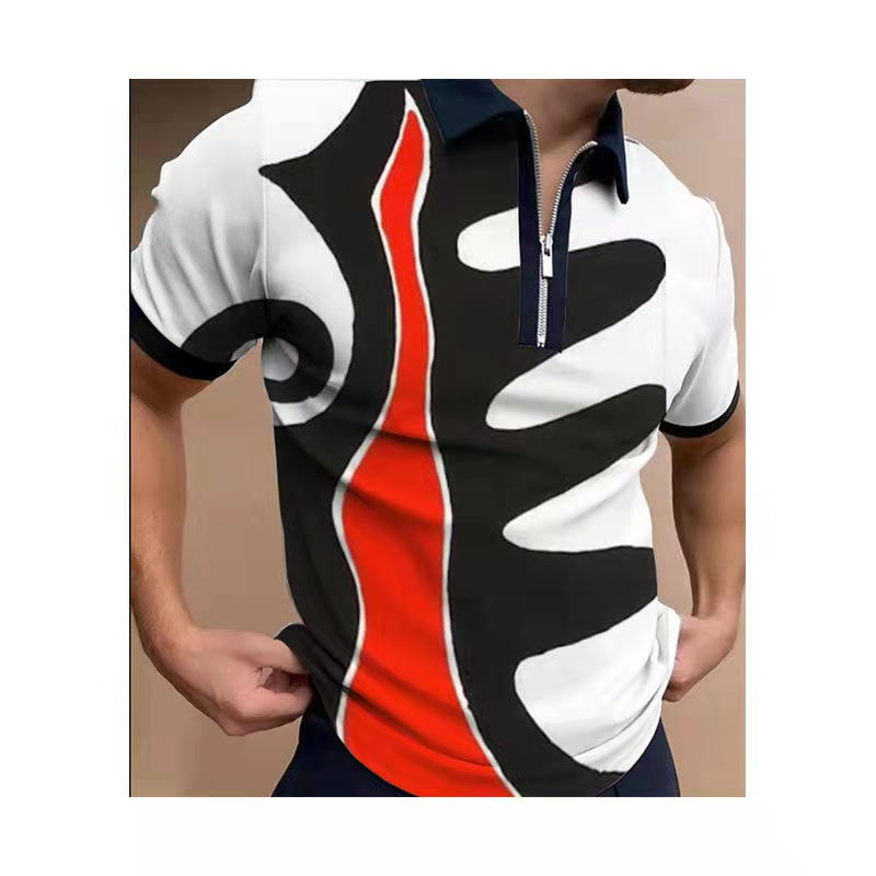 Pullover T Shirt High Quality Summer Collection Polo Shirts Men Short Sleeve Casual Polo Fashion Zip up Men's Printed Tops