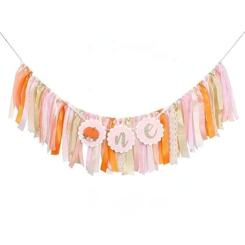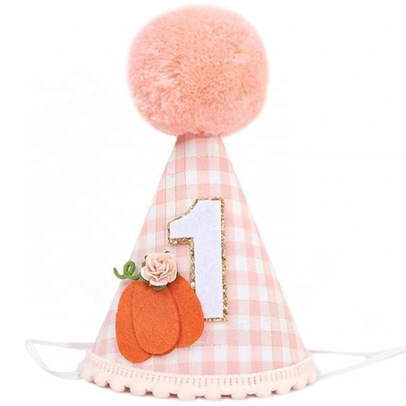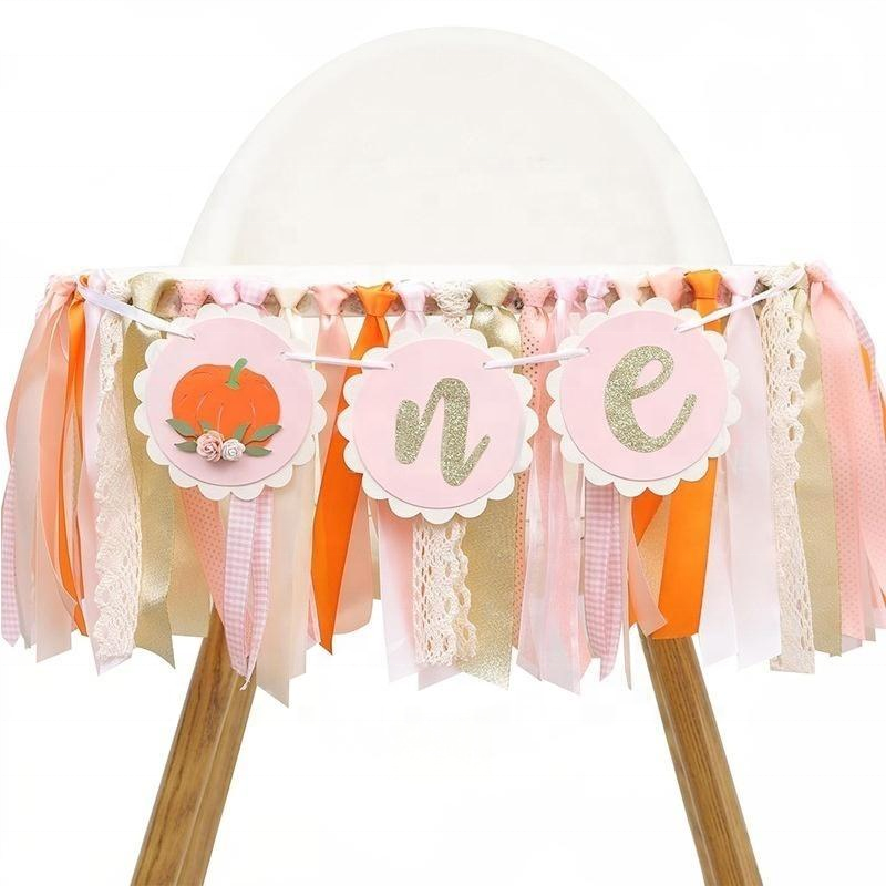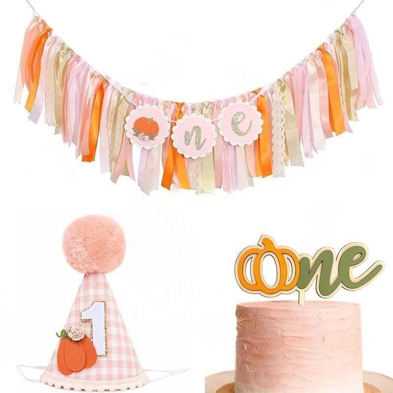Pumpkin 1st Birthday New Year Party Decoration Banner Cute Fabric Triangle Crown Hat Cake Topper Chair Ornament Baby Celebration