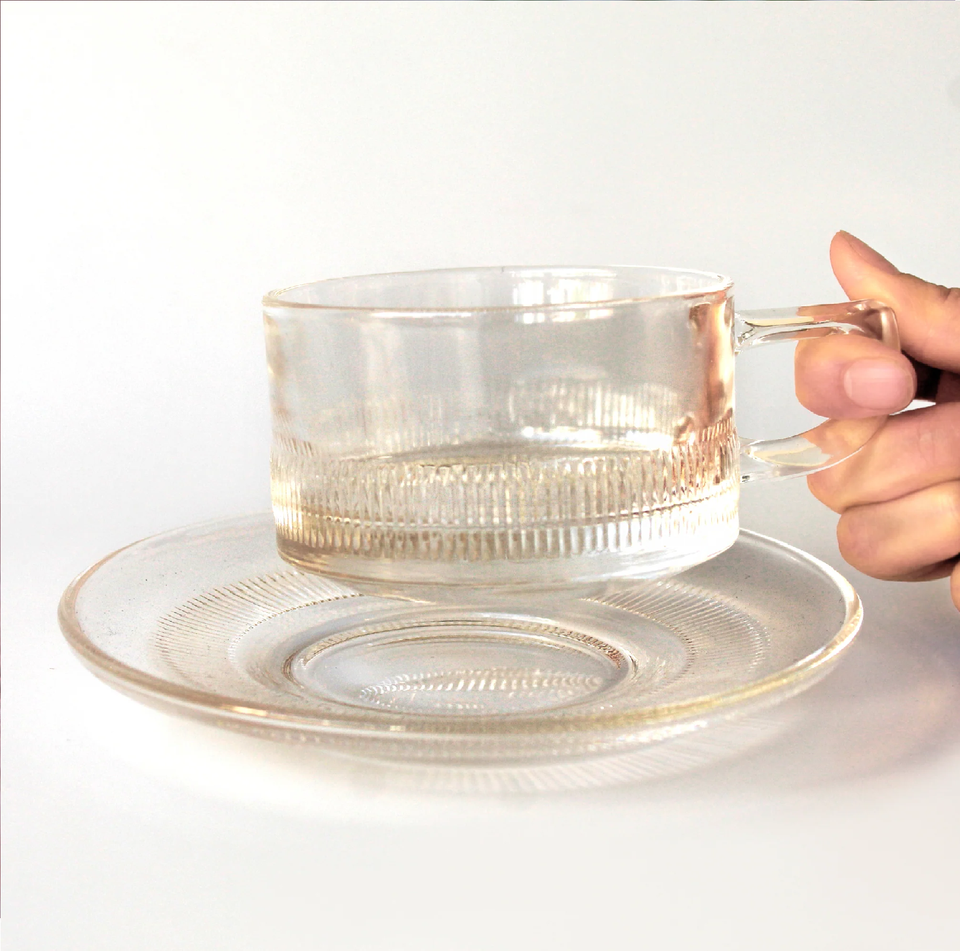 Pumpkin Pattern Black Handled Glass Tea/Coffee Cup With Saucer Set of 6pcs Glass Teacups for Tea Party, Family, Friend Available