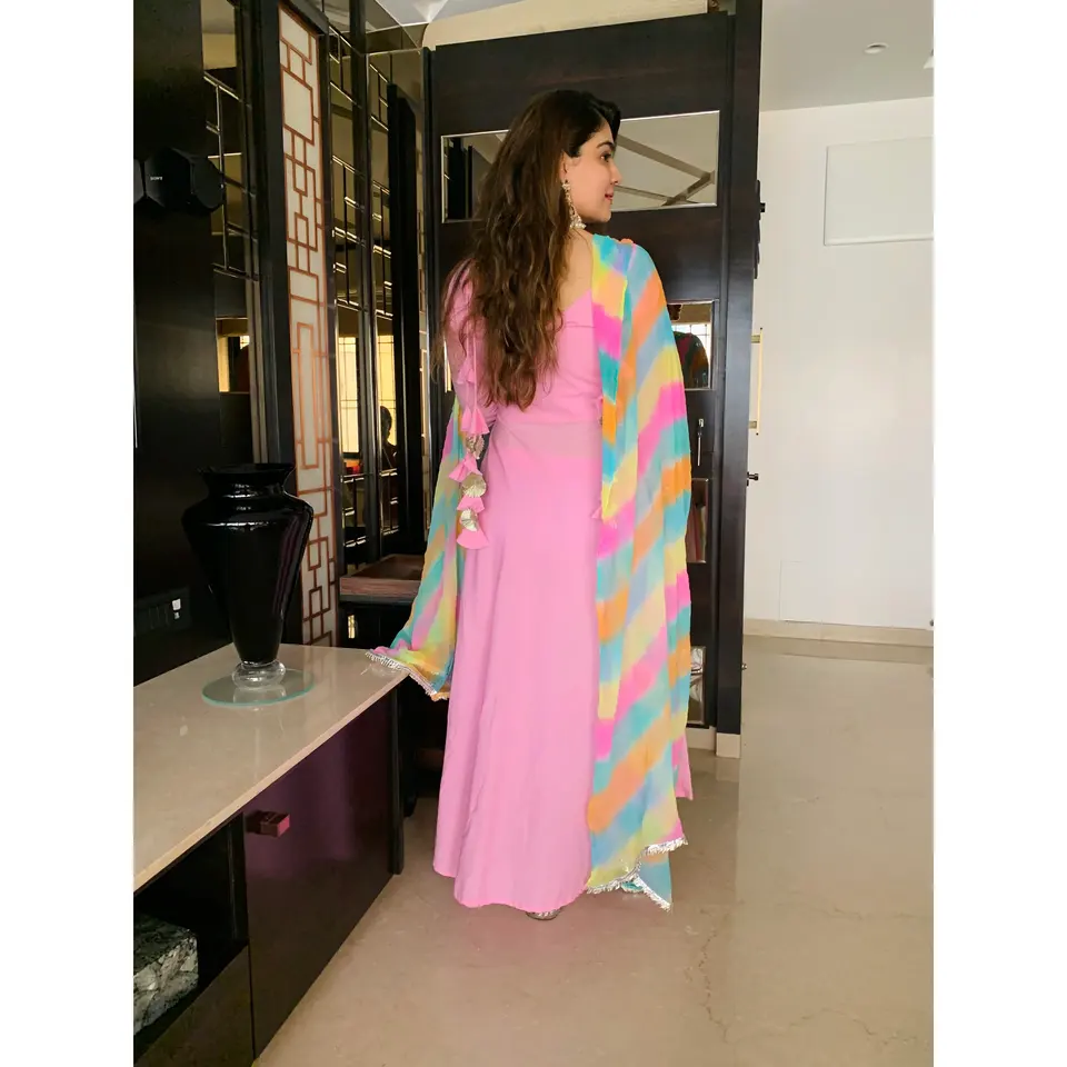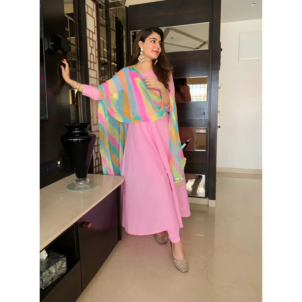 Punch Pink Office Lady Two-Piece Set Cotton Knitting Woven Print Skinny Fit Casual Style Top Shorts Fall Season XS Size