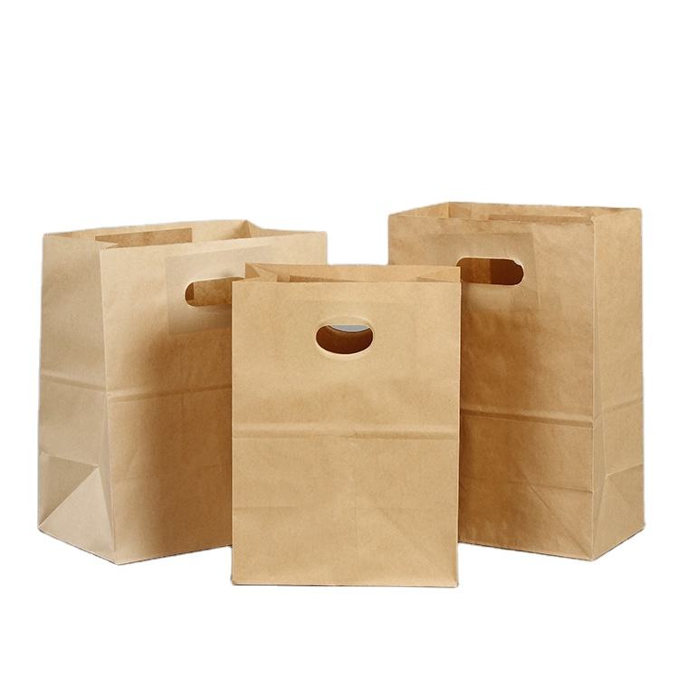 Durable Eco-Friendly Luxury Kraft Paper Bag Hot Stamping Punch Clamshell Design No String Shopping Clothing Cosmetics File Gift