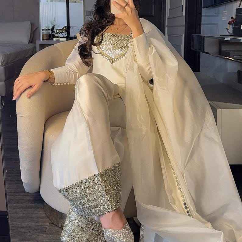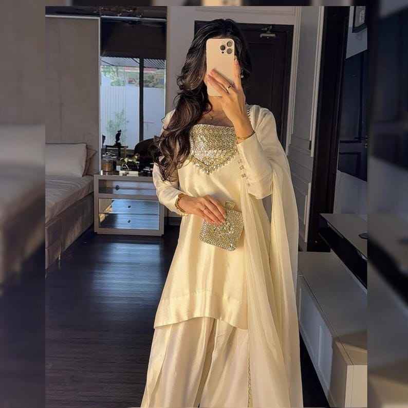 Punjabi Kameez Shalwar Pallazzo Ethnic Silk Pakistani Long Sleeves Satin Dupatta India Wholesale Farshi Modest Natural Waist