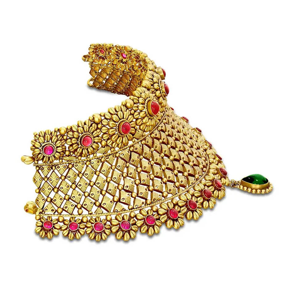 Punjabi Traditional Jewelry Gold Finished Kundan Pearl Green Choker Necklace Set