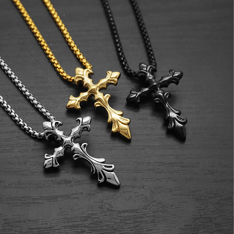 Punk Cross of Cro Religious Anti Non Tarnish Free WaterProof Stainless Steel Fashion Jewelry Pendant Necklaces for Men Wholesale