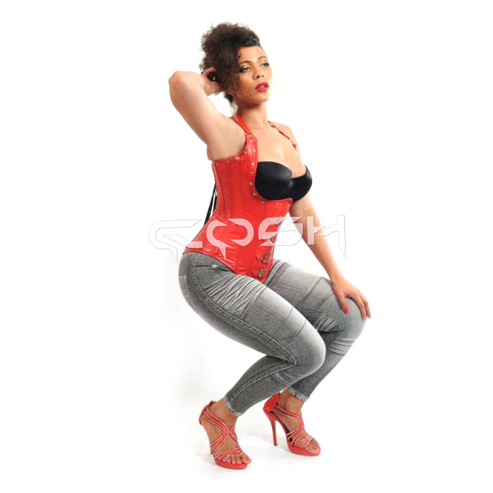 Punk Red Leather Bustier Top Manufacturer From Pakistan harness halter style underbust corset