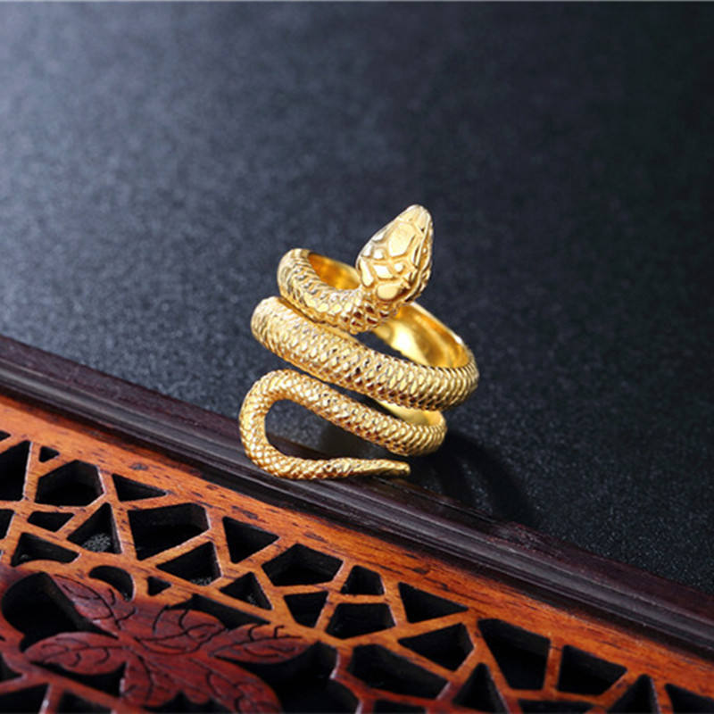 Punk Stainless Steel Gold Plated Snake Shape Ring Adjustable Women Jewelry
