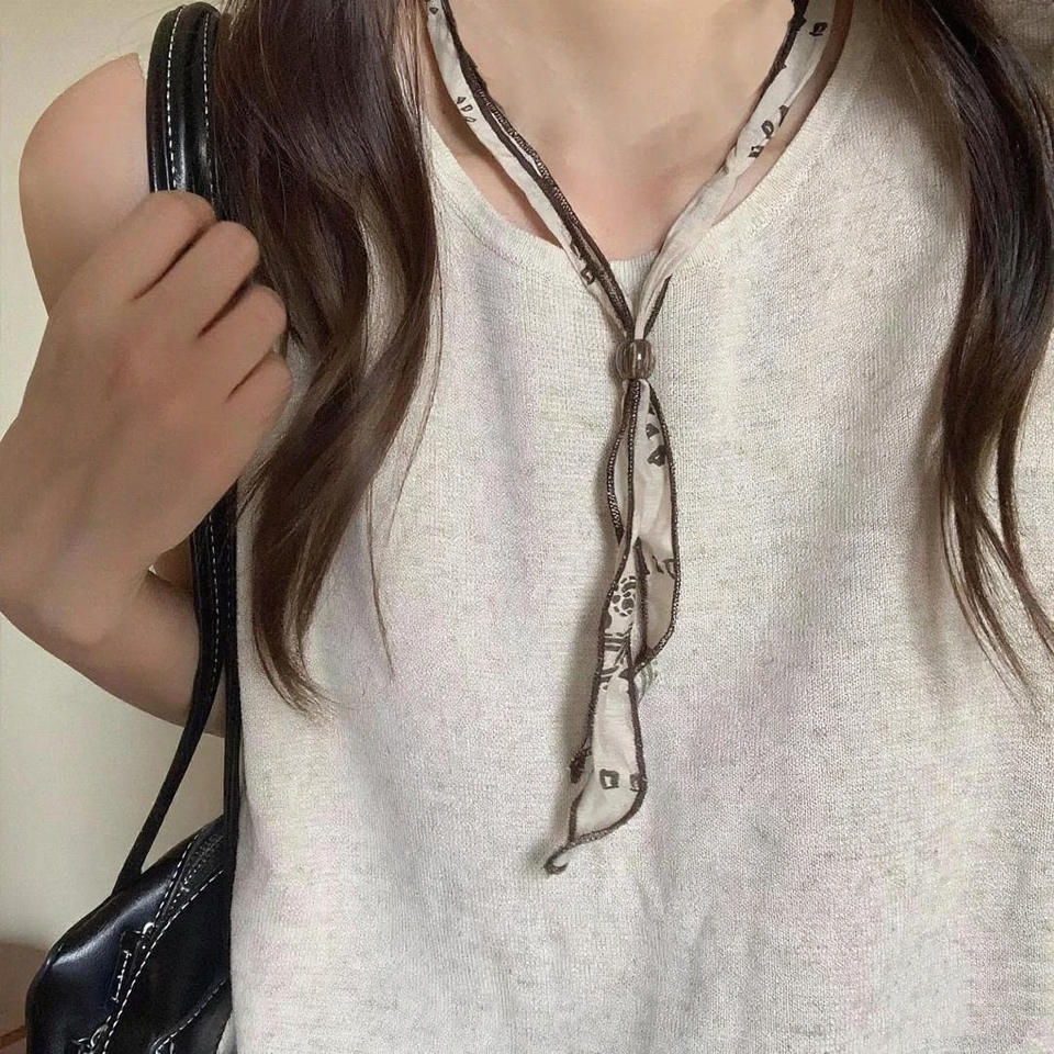 Punk Style Silk Scarf Fabric Wooden Bead Long Pendant Necklace for Women Four Seasons Wearable Neck Accessory