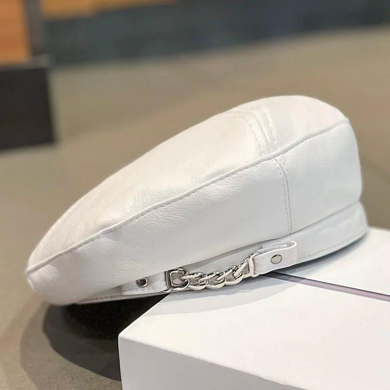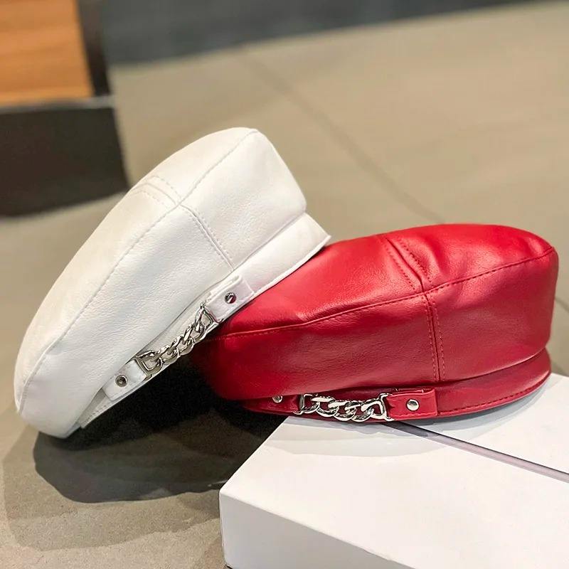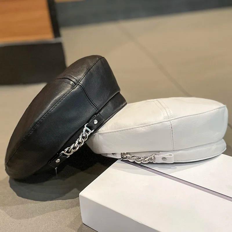 Punk Vintage Beret Hat French Artist Style Warm Winter Beanie Cap Solid Color Elegant Ladies Leather Caps for Casual Outfits