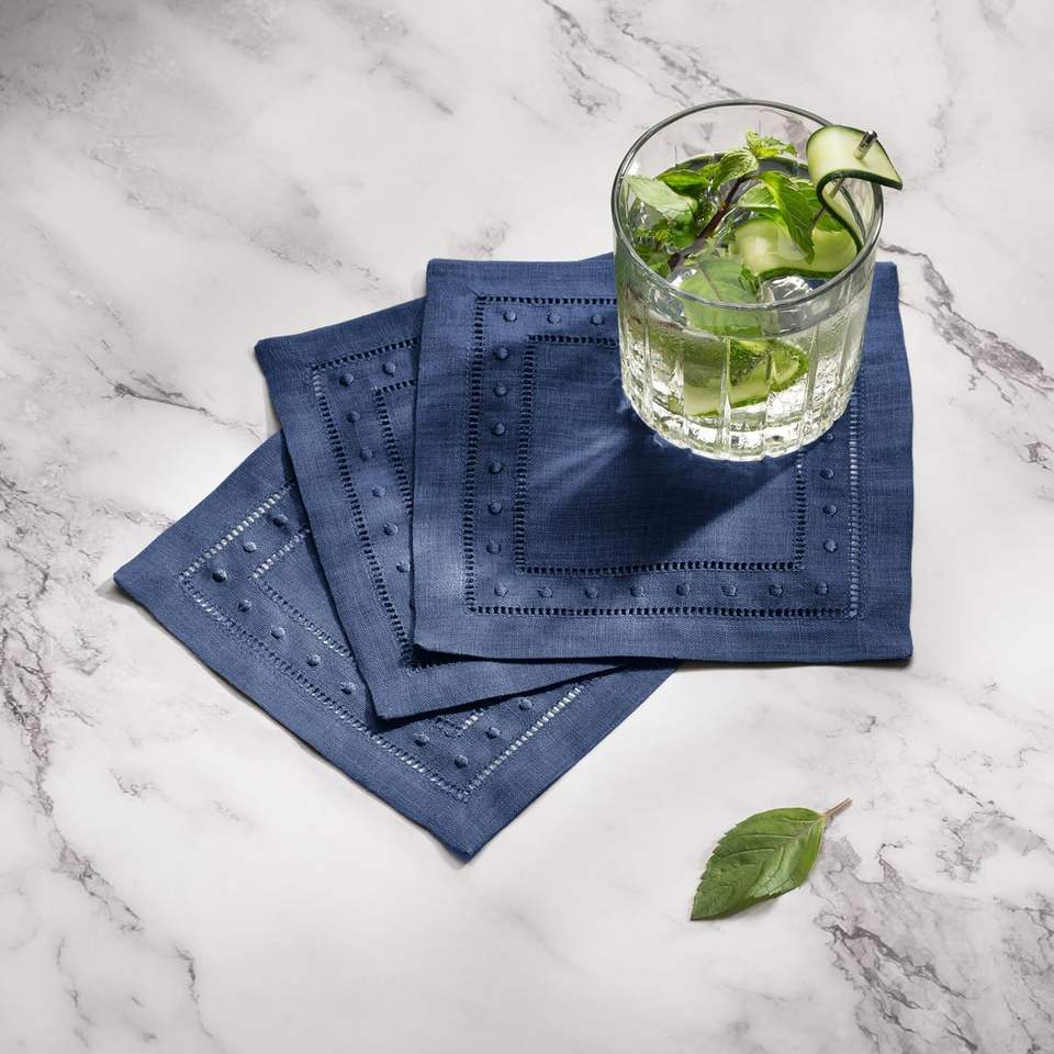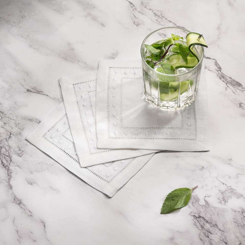 100% Pure Linen 6 X 6 Inch Customizable Cocktail Napkins Coasters Embroidered Dot Hemstitch Striped Reusable Japan Style Wedding