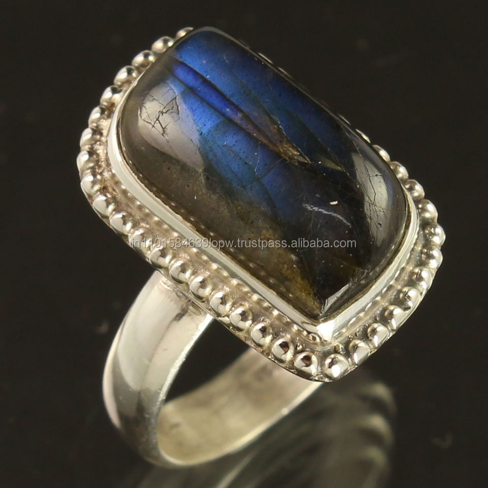Pure 925 Solid Sterling Silver Deco Ring Fancy Shaped Classic Natural Labradorite Cabochon Gemstone Handcrafted Fine Jewelry