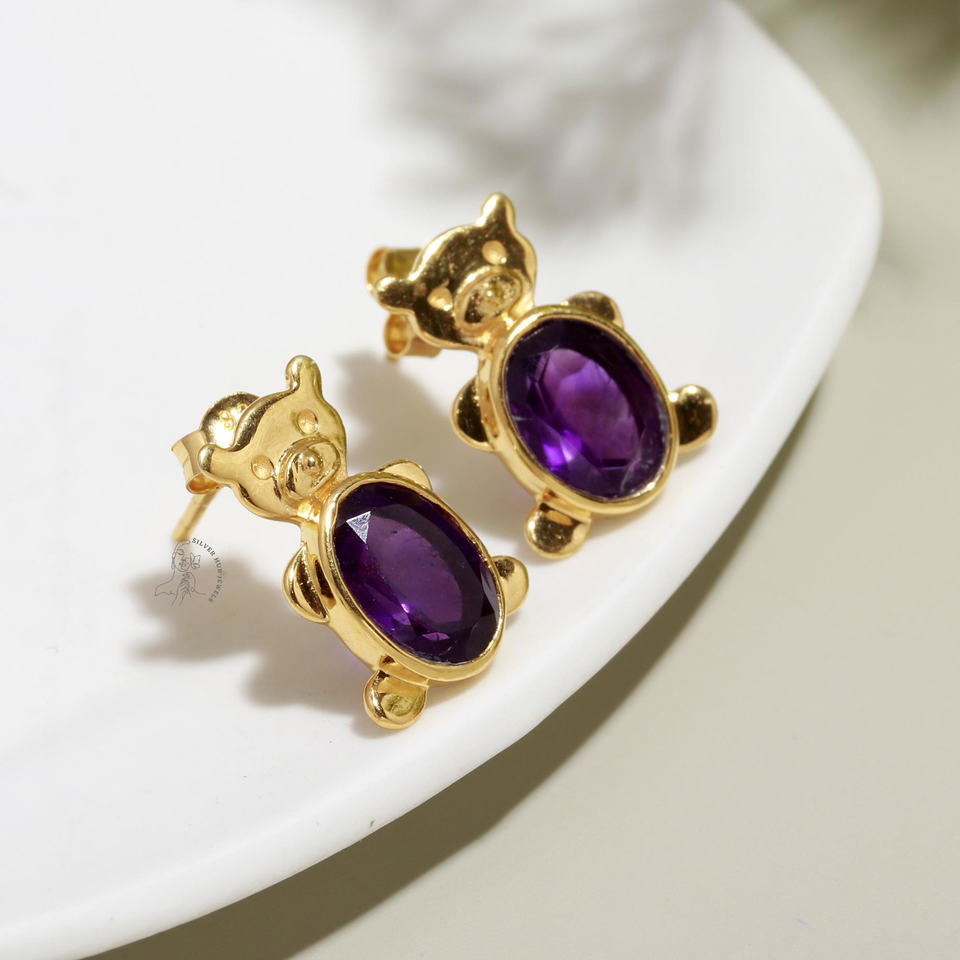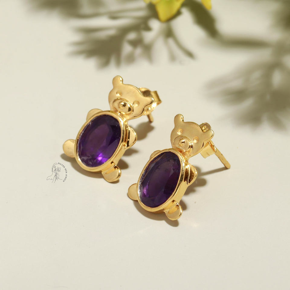 Pure 925 Sterling Silver Amethyst Quartz Stone Earring Women Handmade Amethyst Quartz Silver Stud Earrings