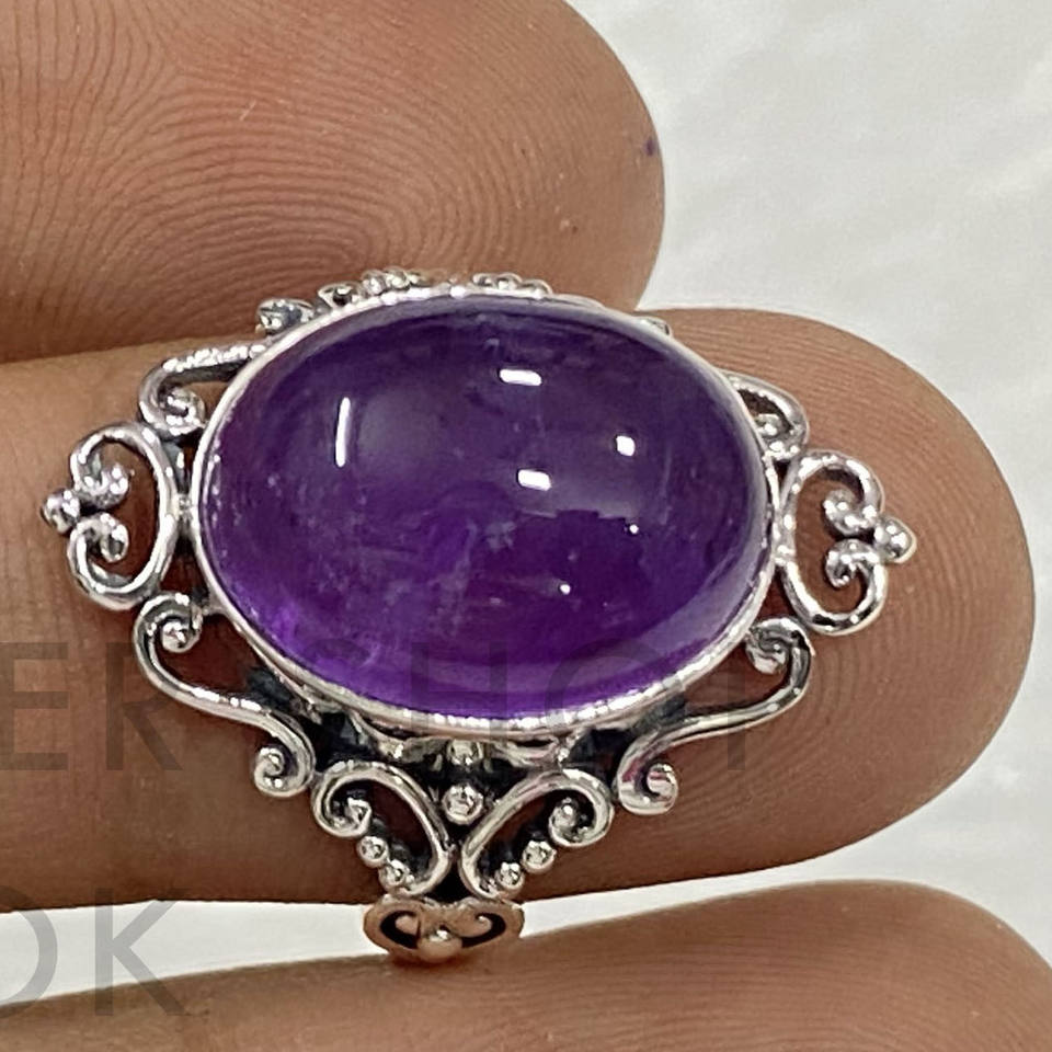Pure 925 Sterling Silver Victorian Design Amethyst & Turquoise Stone Ring Unique Design Fine Jewelry Victorian Wedding Boho Ring