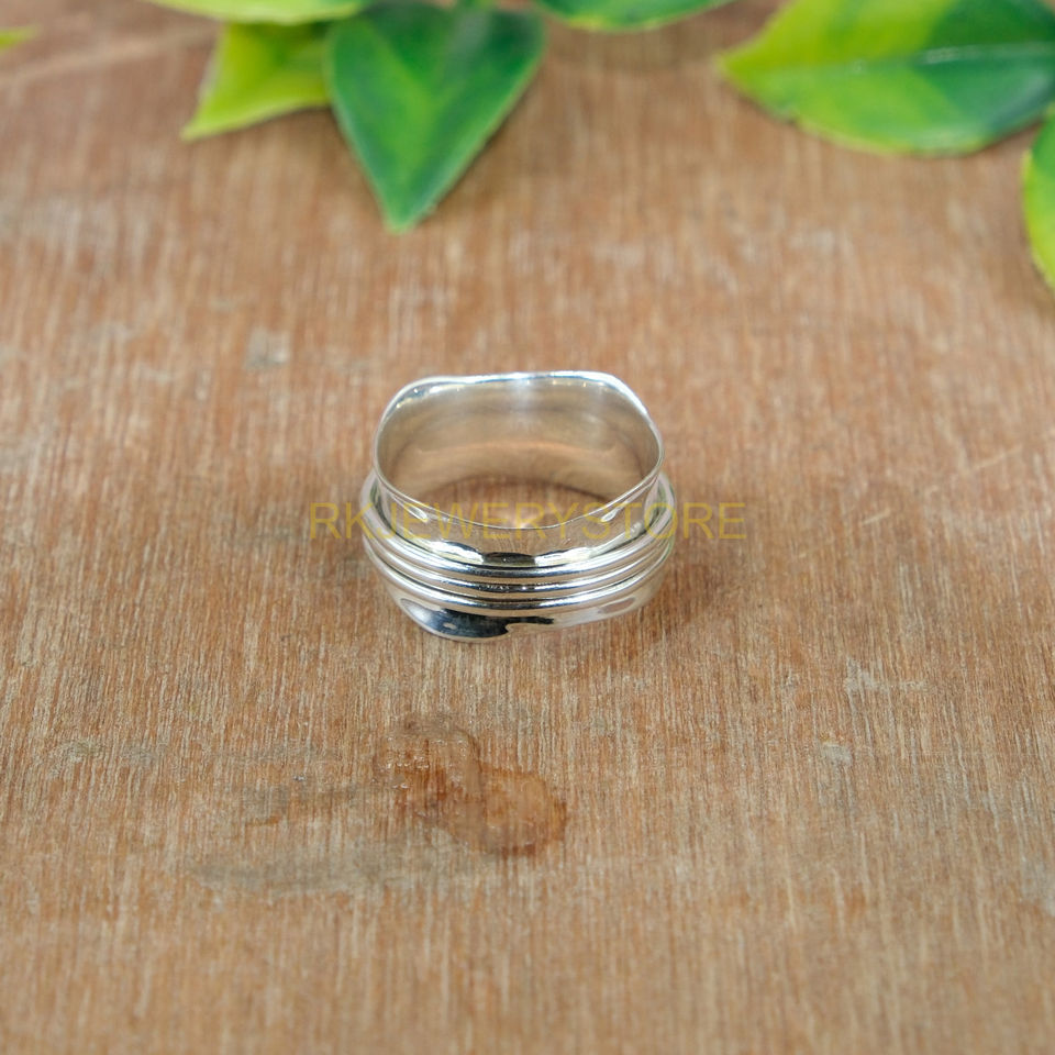 Pure 925 Sterling Silver Wide Band Hammered Spinner Ring Fidget Meditation Thumb Band Ring Anxiety Relief Jewelry Gift