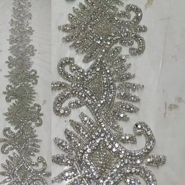 Pure Beaded Embroidery Lace Fabric for Bridal Garments Bags Elegant Embellished Fabric for Dress Making and Crafts