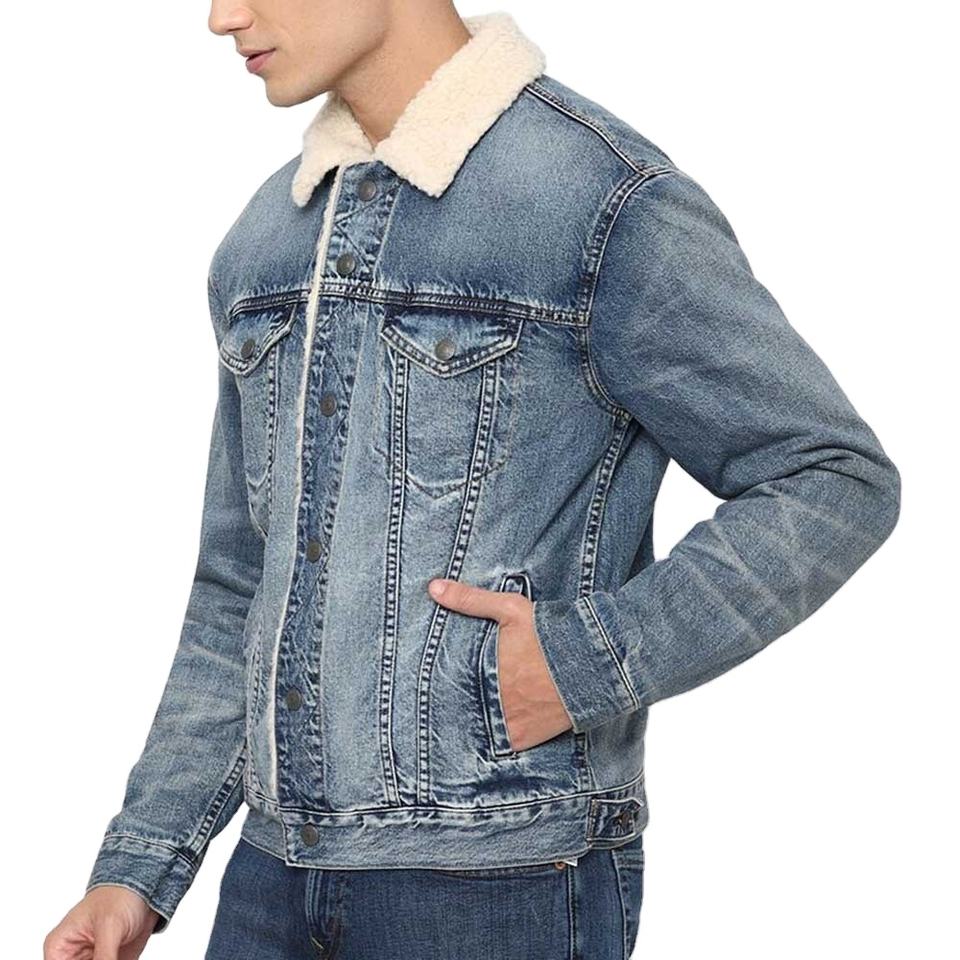 Pure Branded Material Regular Western Denim Jacket Lined Style Casual Trucker Fur Collar Jeans Jacket For Men