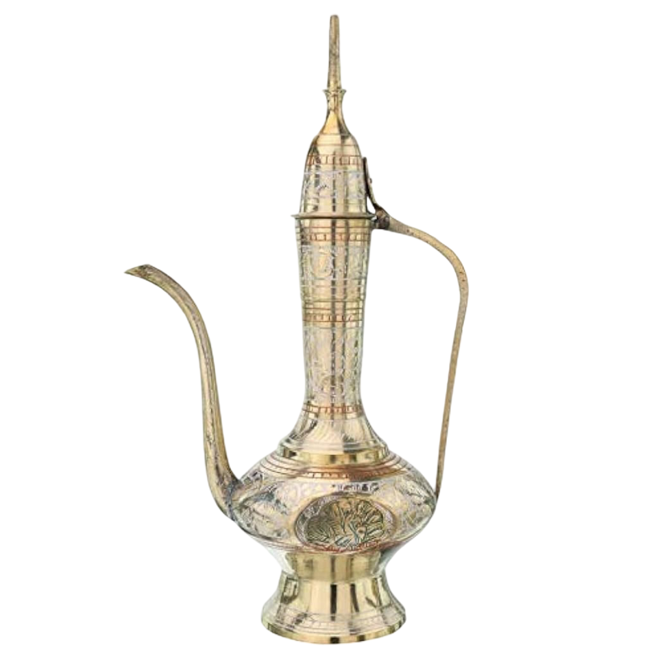 Pure Brass Beverage Pitcher With Lid & Handle Arabic Dallah Style Brass Jug Customized Size Shape Colour Metal Tableware