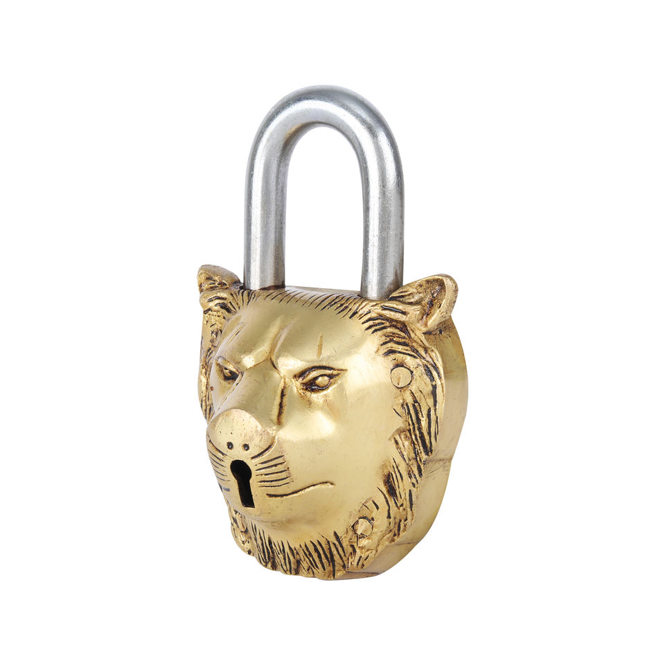 Exquisite Artistic Design Polished Brass Lion Face Lock Handcrafted Religious Style Religious Figurine with Reliable Security