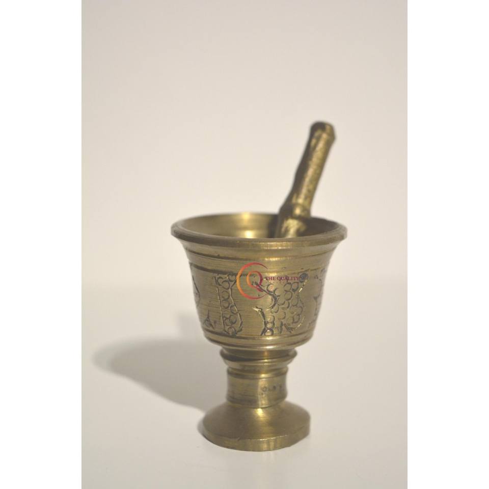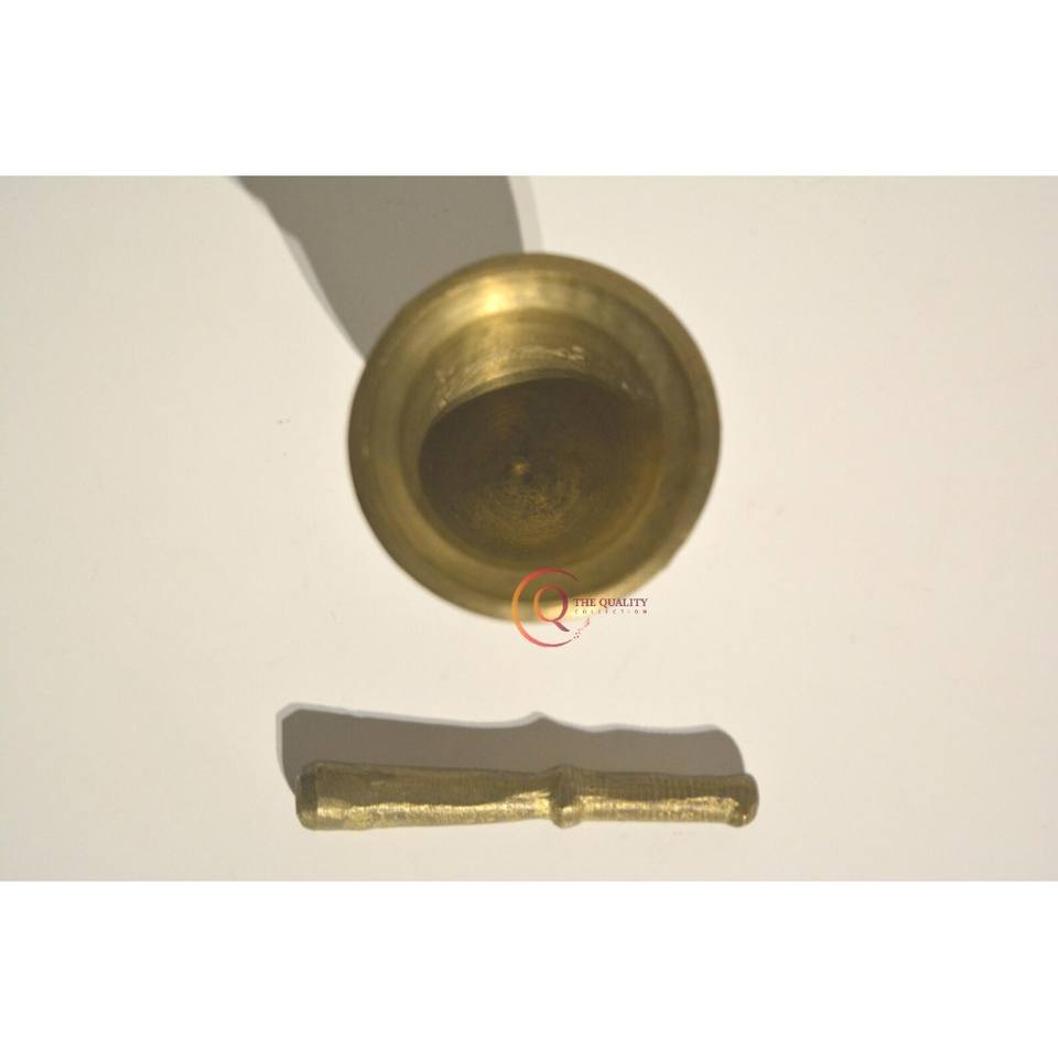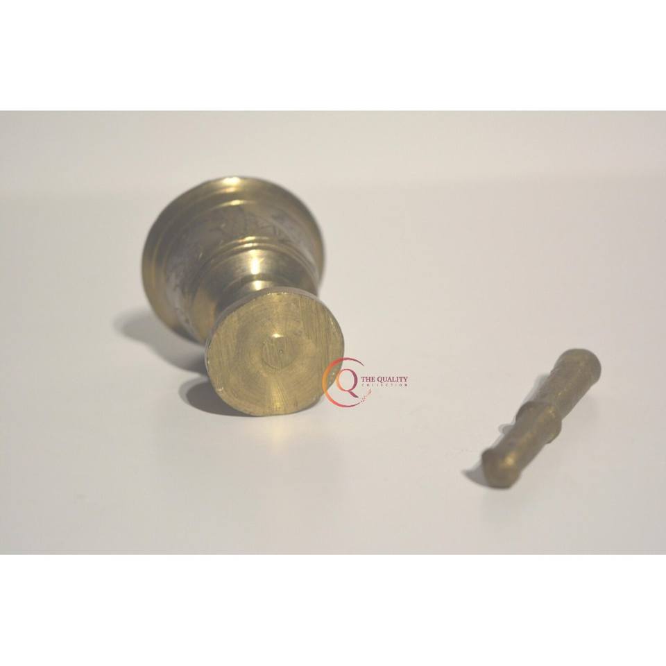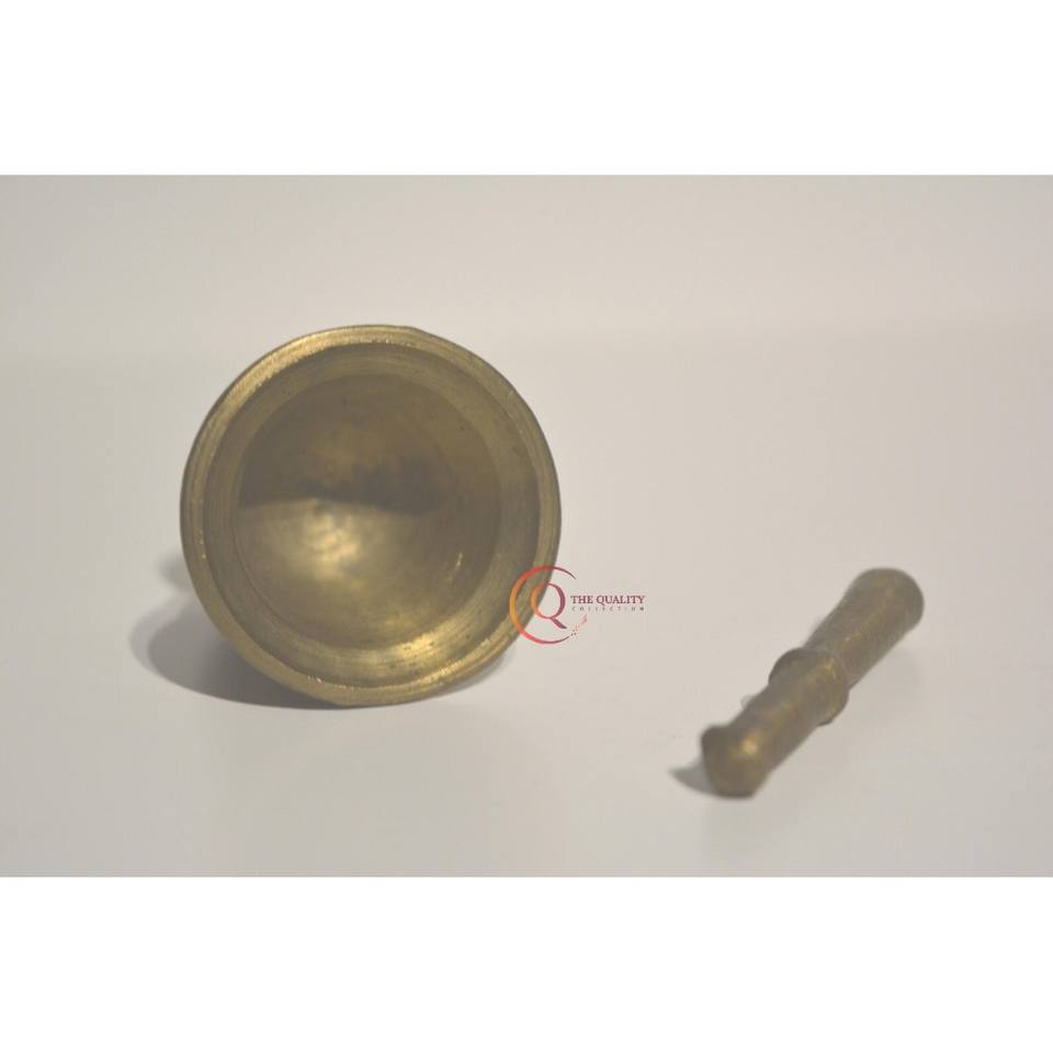Pure Brass Imam Dasta Mortar Pestle Set Ohkli Musal Kharal Cookware 4 Inches Tabletop Use for Grinding Fruit Veggie Plastic