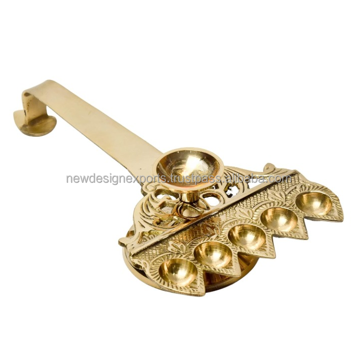 Pure Brass Panch Aarti Deep | Traditional Pooja Diya for Mandir & Rituals