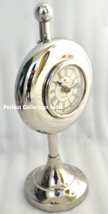Pure Brass Stand Clock Table Desk Clock with Antique Finish Rounded Shape Table Clock for Home Study Living Room Decor Showpiece
