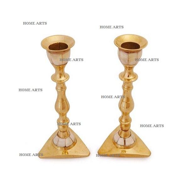 Pure Brass and Mother of Pearl Tea Light Candle Holder With Top Quality Large Size Table Top Candlestick From India
