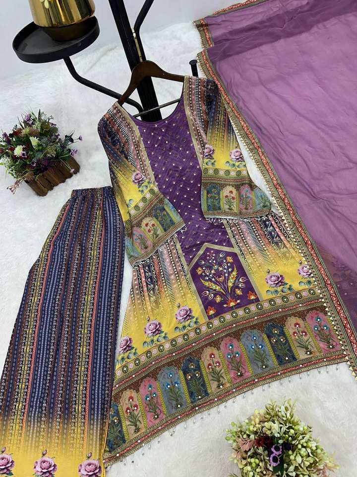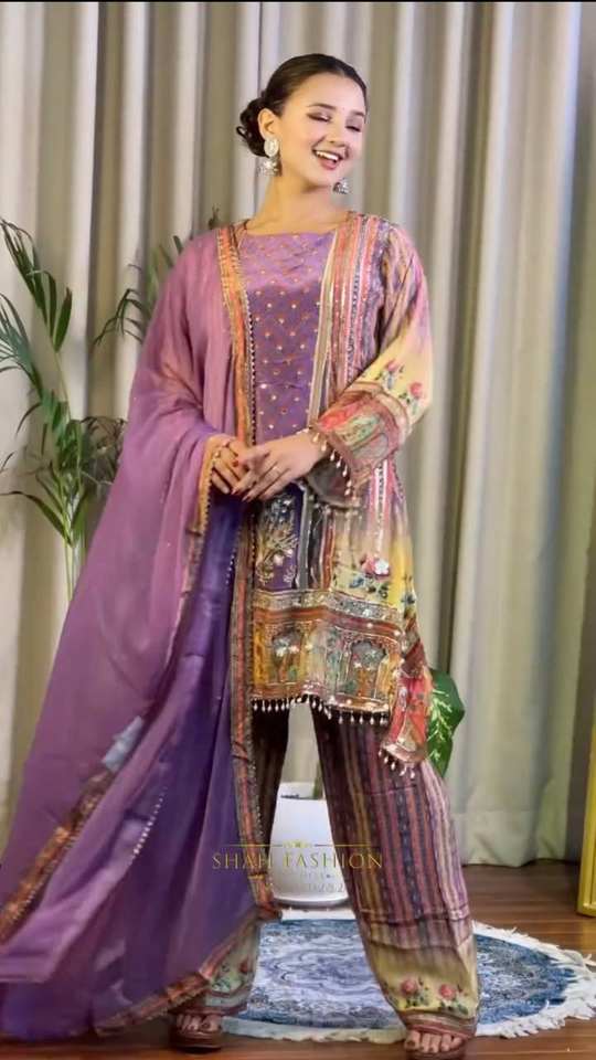 Product Name:Chinon Silk Top Palazzo And Dupatta Set