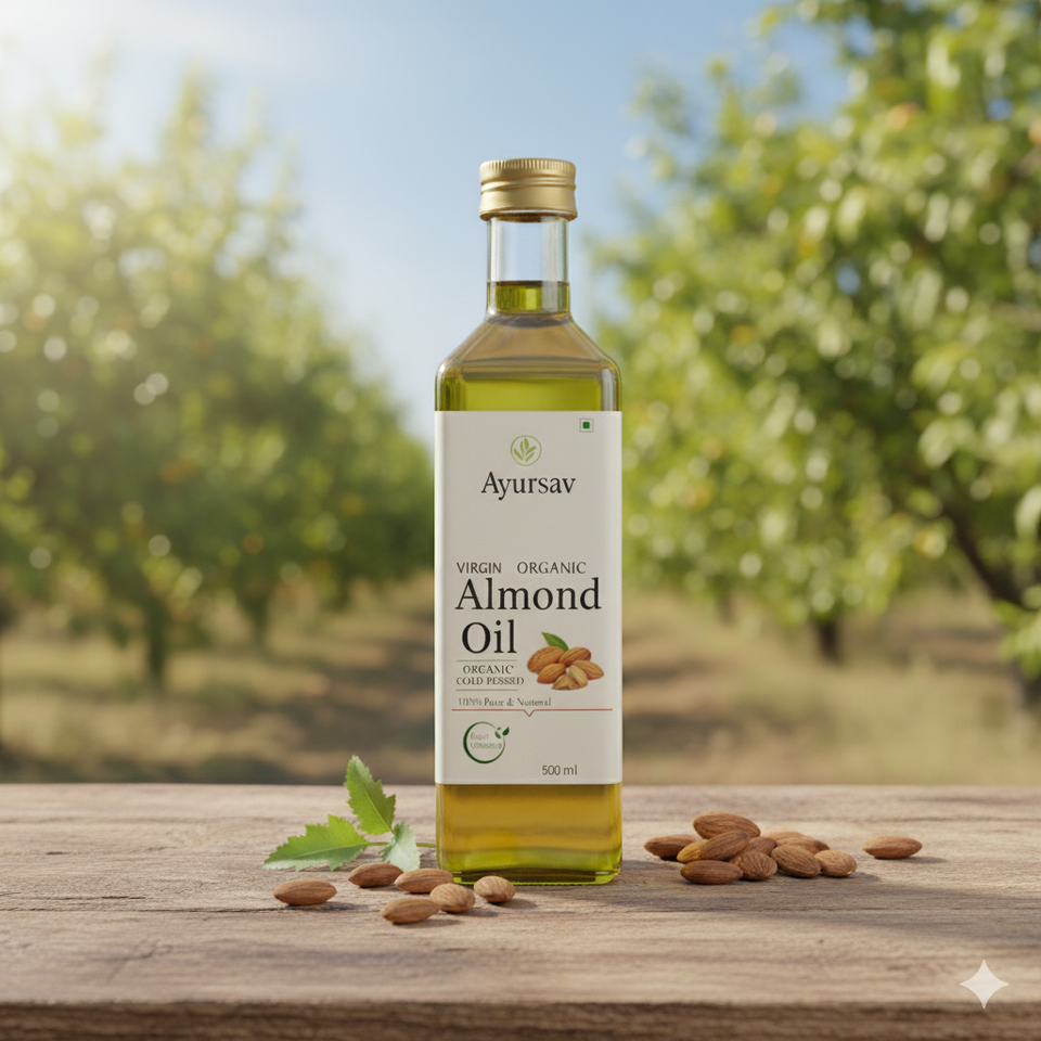 Pure Cold Pressed Almond Oil for Skin Hair Face Body Massage | 100% Natural Vitamin E Moisturizing Oil by Ayursav India