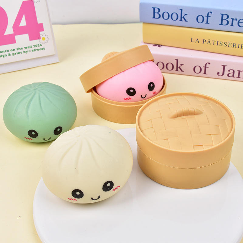 Pure Color Squeeze TPR Dumpling Squishy Steamed Bun with Box Dumplings Sensory Squeeze Toy for Stress Relief Gifts