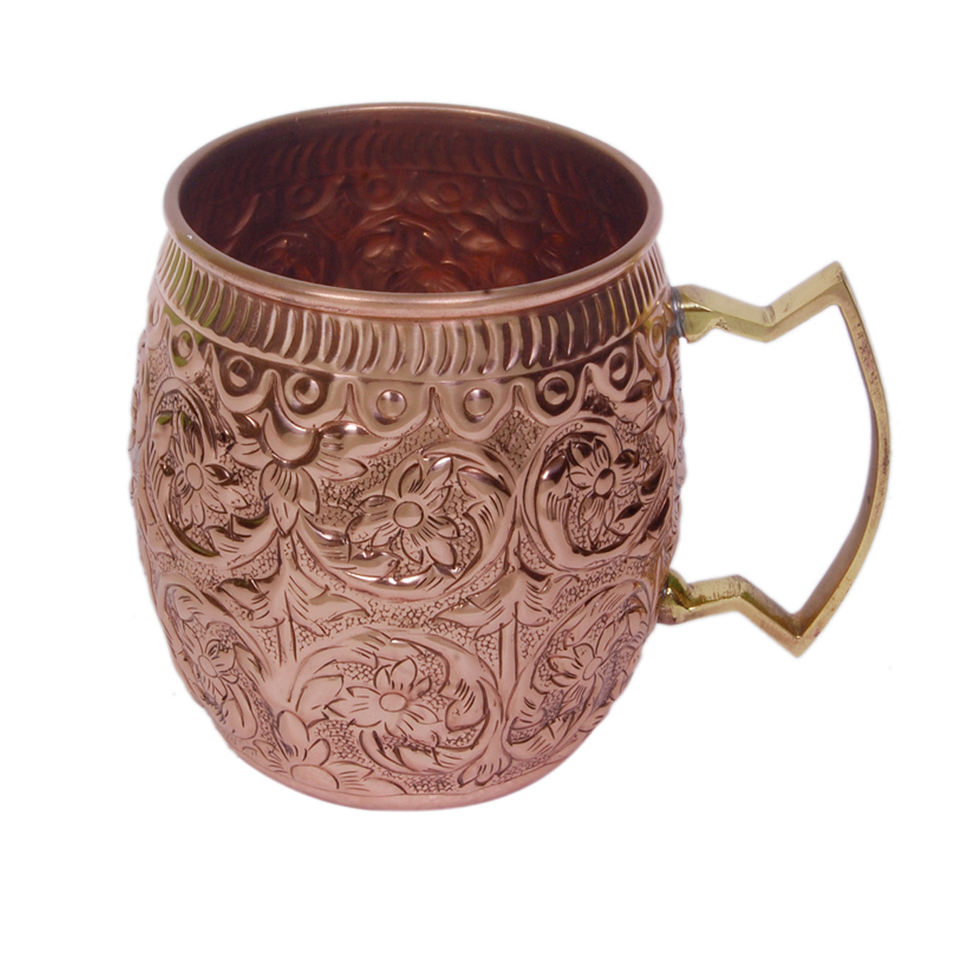 Pure Copper Flower Embossed Moscow Mules Mug With Handle Shiny Polish Copper Water Mug for Drinking Water Copper Wine Glass
