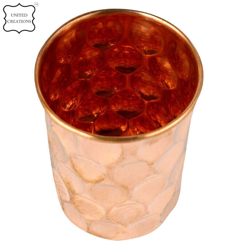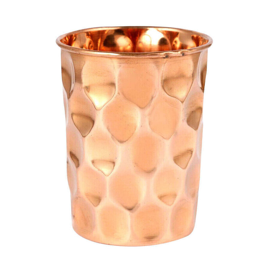 Pure Copper Hammered Glass Tumbler Eco-Friendly Immunity Booster Metal Cup Premium Drinkware