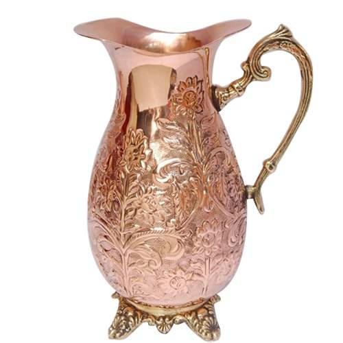 Pure Copper Metal Designer Drinking Water Jug Insulated Copper Pitcher With Brass Handle Decorative Drinking Water Jug Home Use