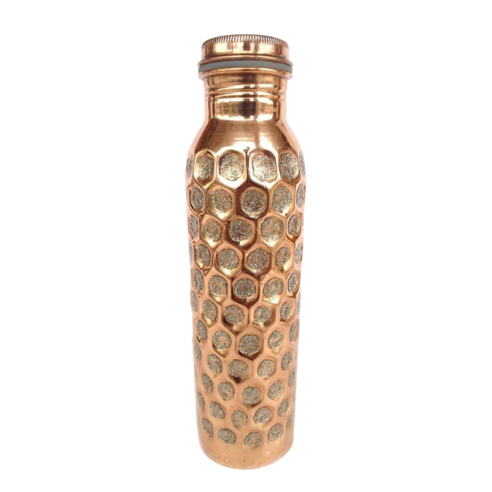 Pure Copper Water Bottle Handmade Health Benefit Leak Proof Designer Paisley Print Drinking Bottle Gifts Item For Yoga & Travel