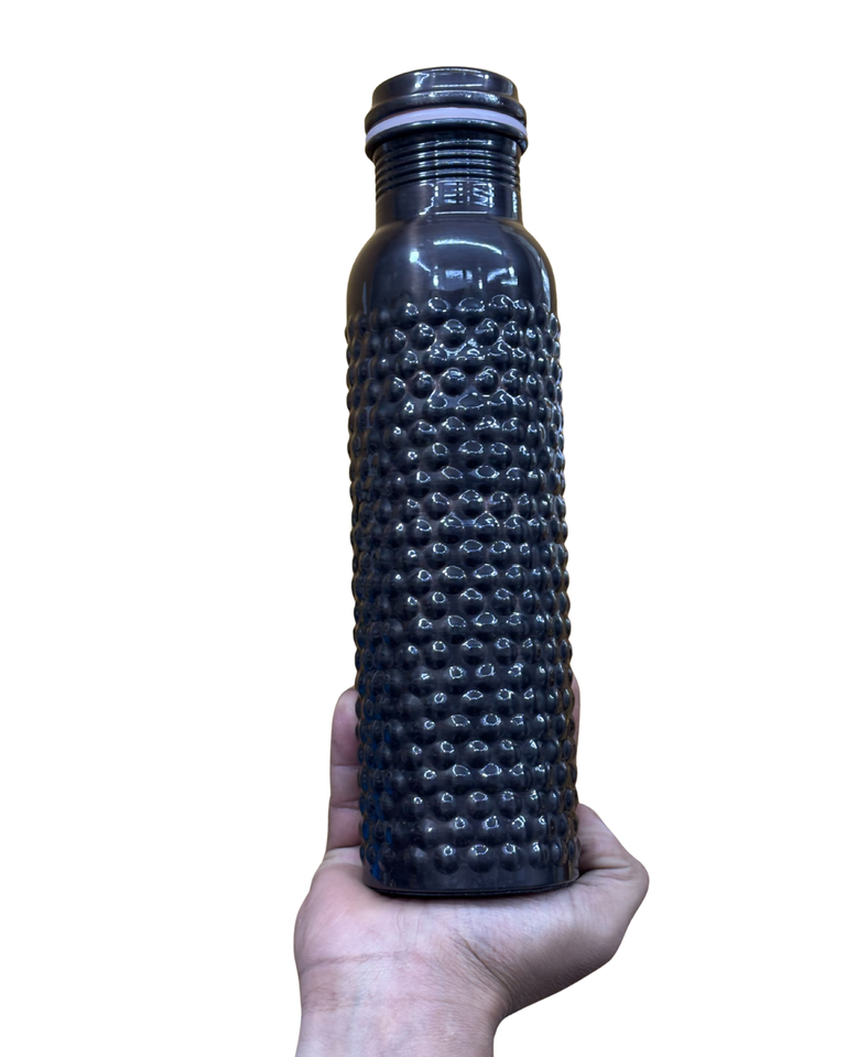Pure Copper Eco-Friendly Water Bottle for Daily Drinking Natural Healthy Hydration Large Capacity Unique Bubble Design Black