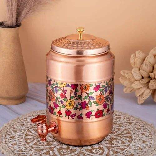 Pure Copper Water Dispenser Jug with Secure Lid Ideal for Home Kitchen Storage and Office Drinking Needs