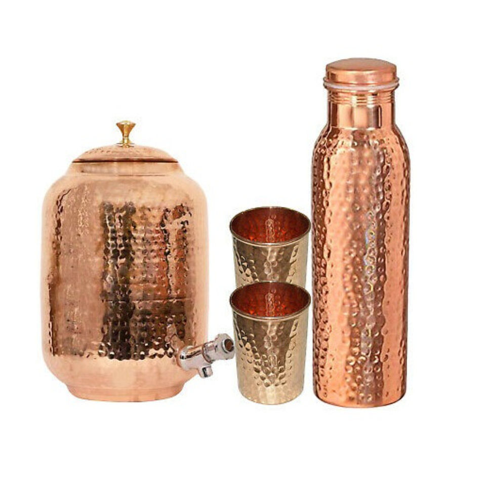 Pure Copper Water Dispenser with Tap Enameled Modern Home Kitchen Decor Storage Filter Tank Good Health Water Drink Ware Gift