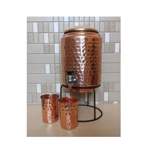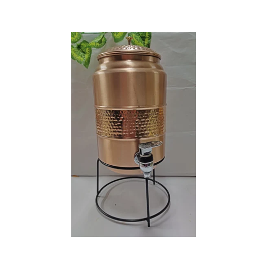 Pure Copper water cooler Drinking Water Best Selling Diamond Hammered Drink Ware Set Pure Copper Water Pitcher with metal stand