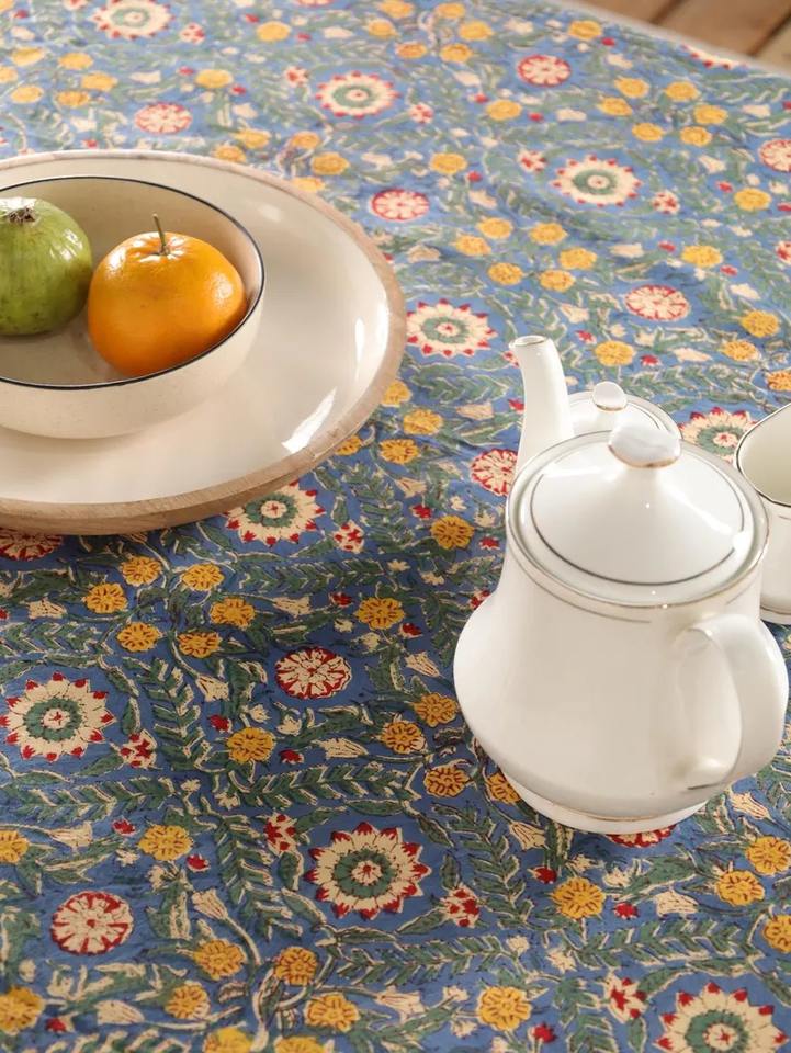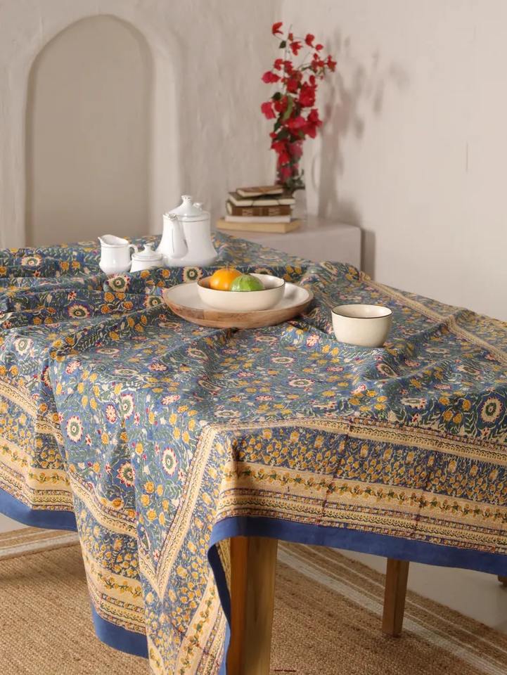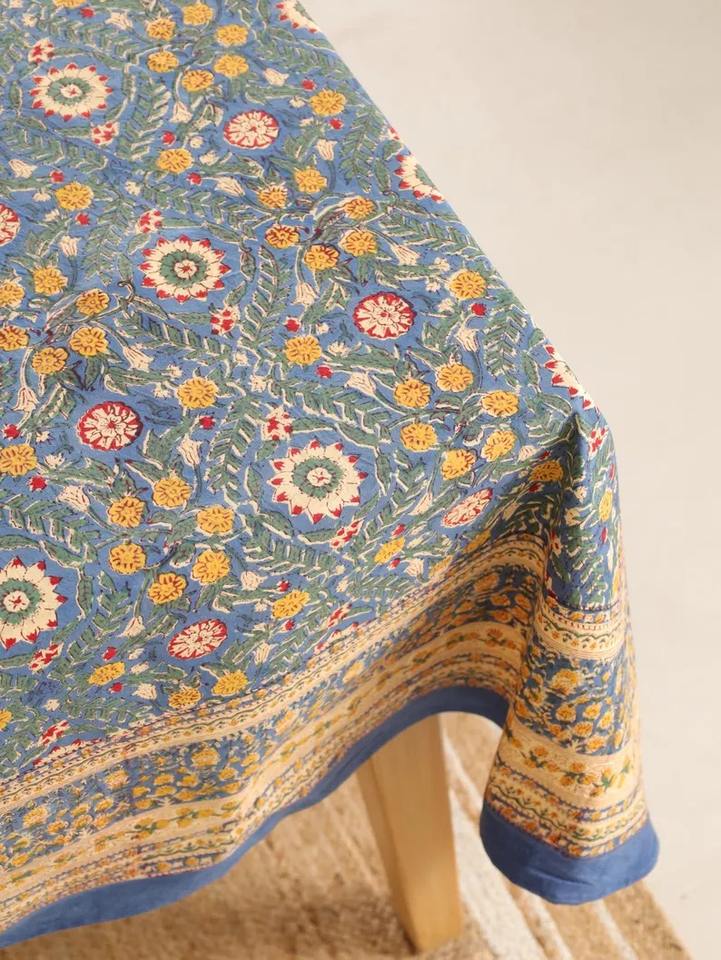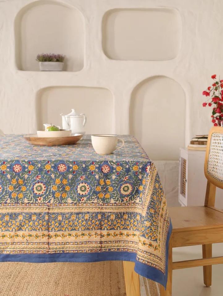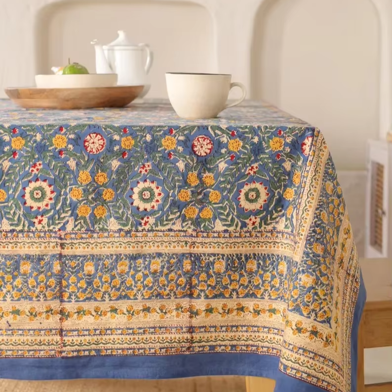 Pure Cotton Block Print Floral Design Tablecloth Machine Washable Wedding Party Decorative Home Table cover
