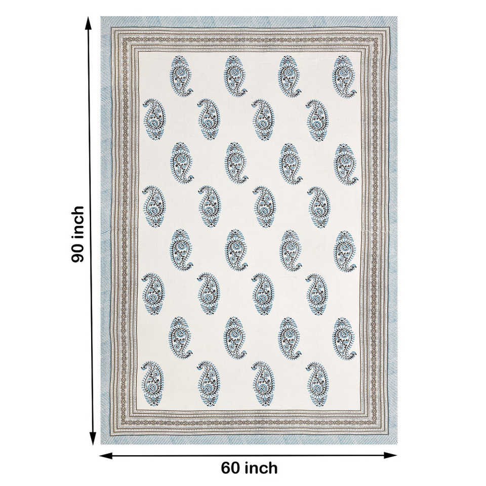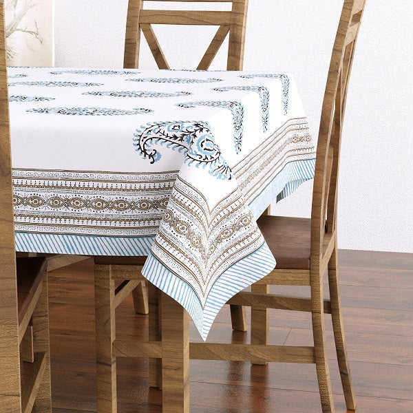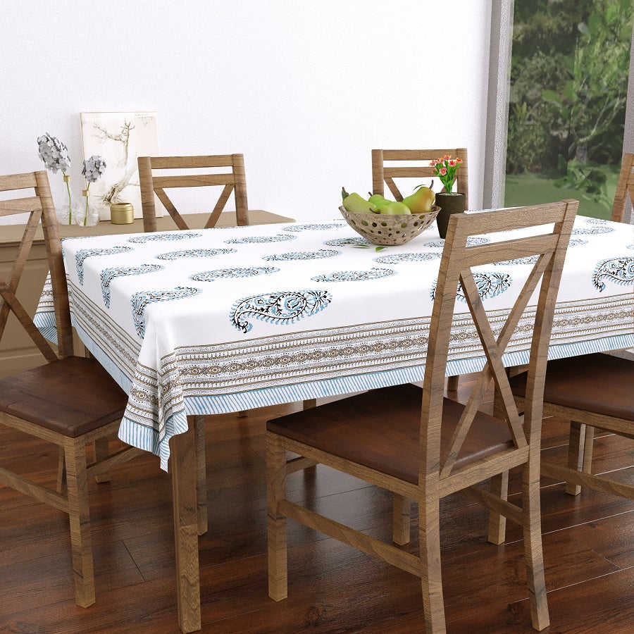 Pure Cotton Hand Block Printed Rajasthani Table Cloth in Grey Rectangular Linen Wedding Hotel Tablecover Branded Commercial Use