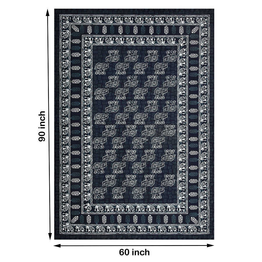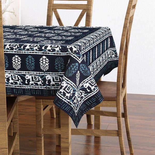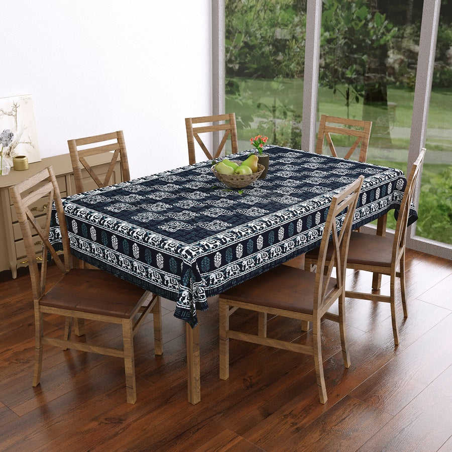 Pure Cotton Handmade by Recognized Artisans Rajasthan Hand Block Print Six Seater Table Cloth 150x225cm Grey Elephant Design