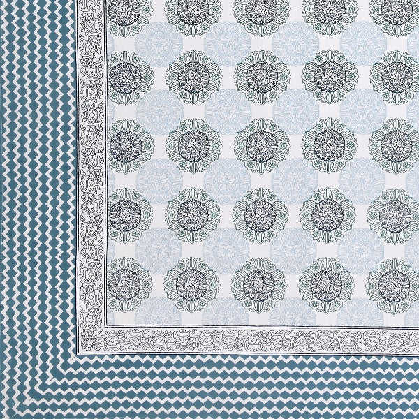 Pure Cotton Rajasthani Hand Block Printed GREY CIRCLE Table Cloth Rectangular Linen Tablecloth for Hotels Bars Branded Product