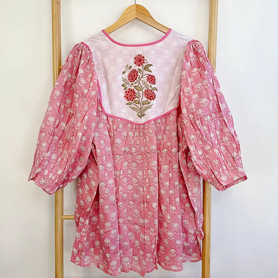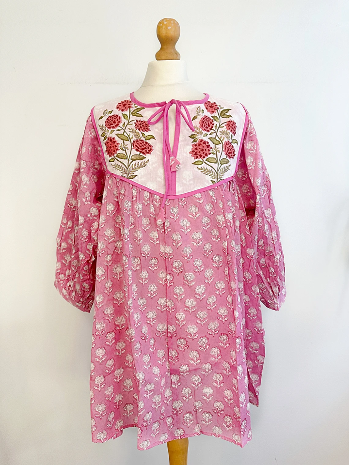 Pure Cotton Short Dress Indian Block Print Tunic Long Top Colourful Summer Earthy Elegant Comfy Daywear