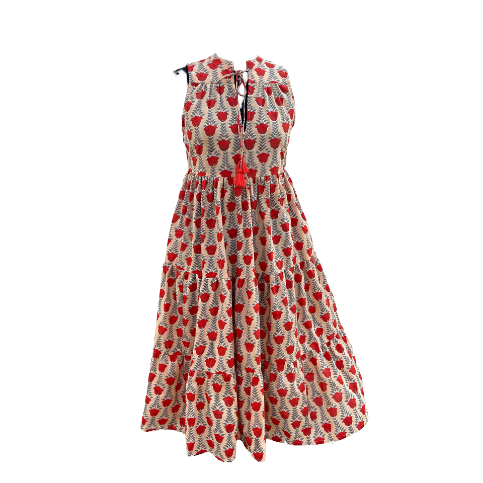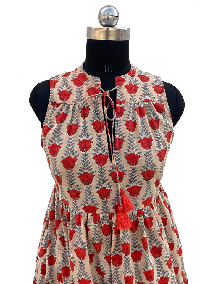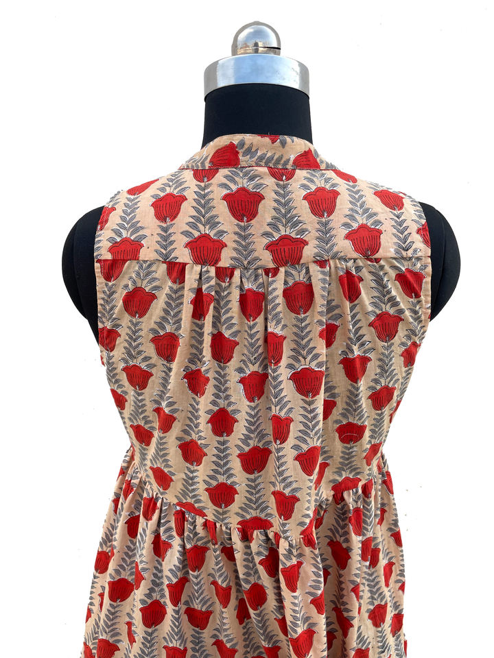 Pure Cotton Women's Summer Maxi Dress Bohemian Floral Print Hand Block Printed Sleeveless Indian Style with Logo on Back