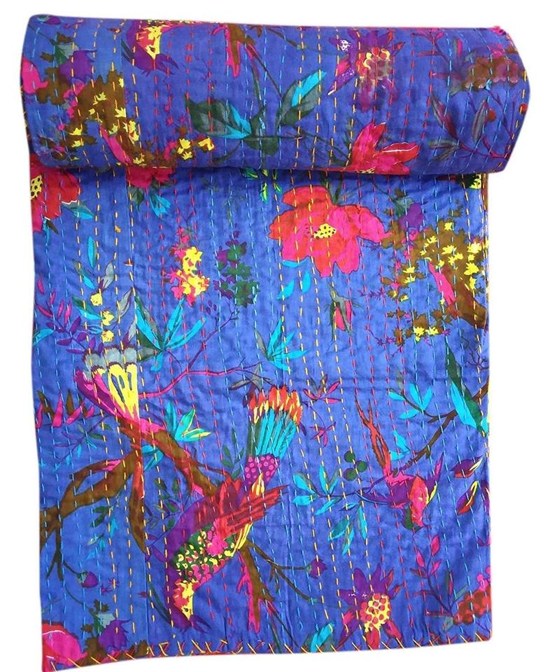 Pure Cotton Throw Blanket Quilts Boho Indian Kantha Work Bedding Sets Bohemian Hippie Bedspread King Size for Bedroom Decor