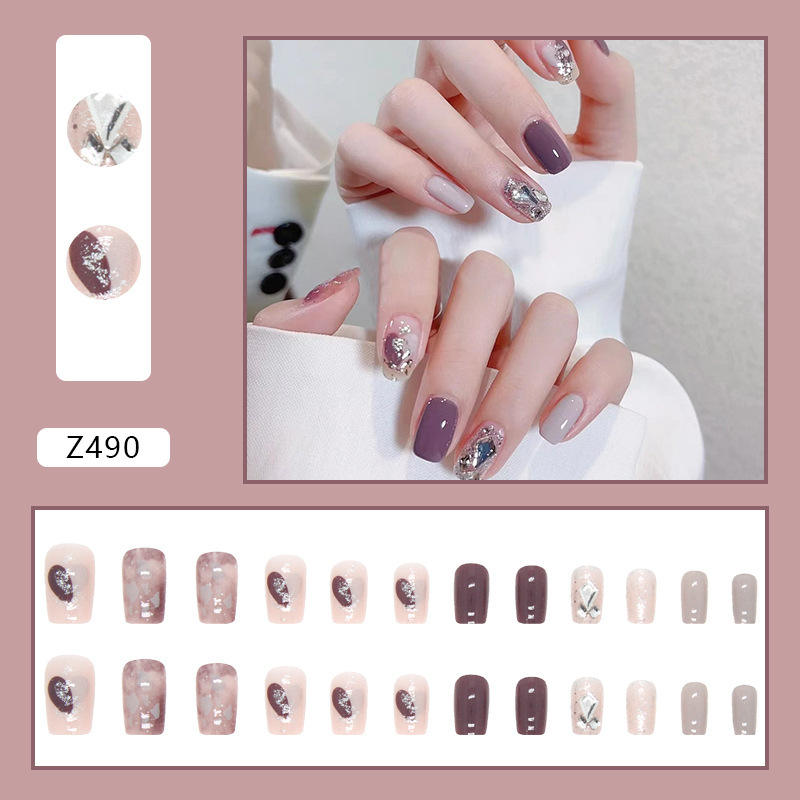 Pure Fairy Charm Rhinestone Nail Art Medium Length Acrylic With Glue Adhesive Tabs 24 Pieces For Autumn Winter