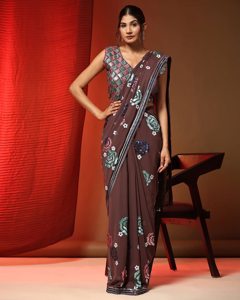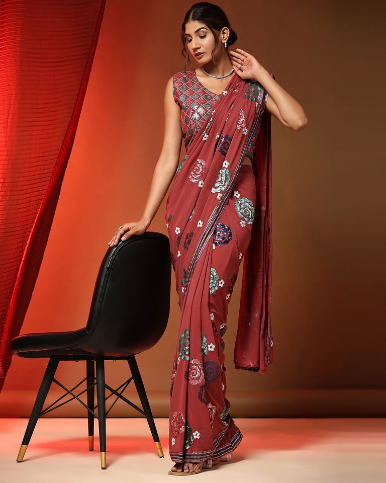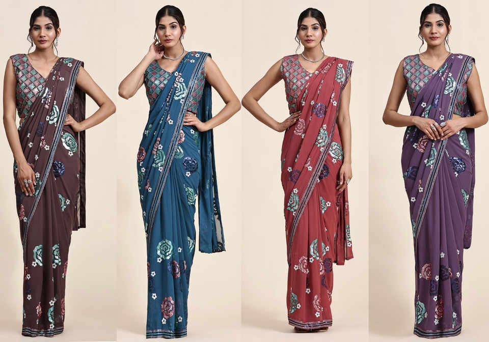 Pure Georgette Fabric With Multi Sequin Embroidery Work Ready to Wear Sarees by Indian Exporter