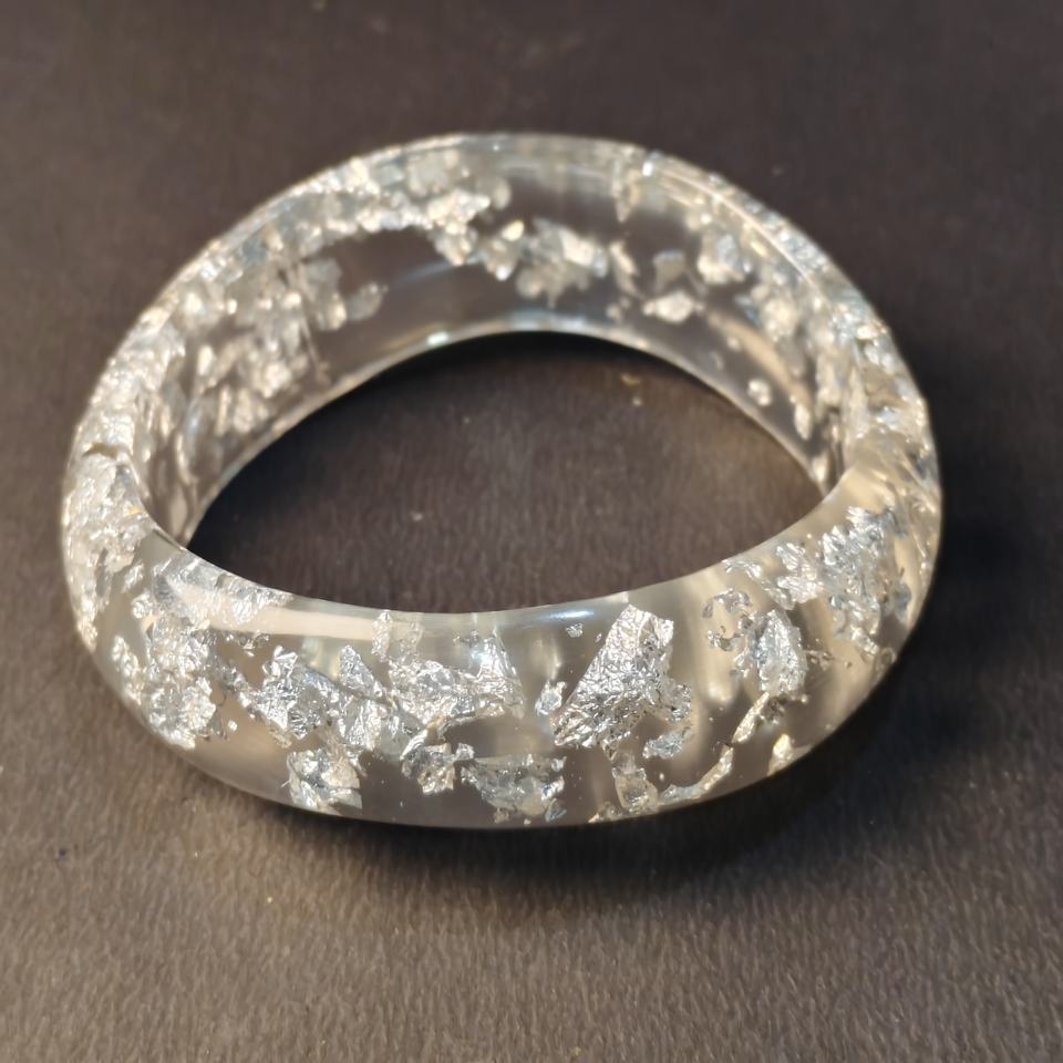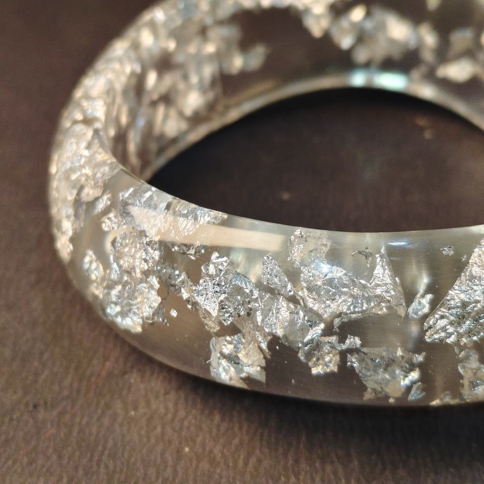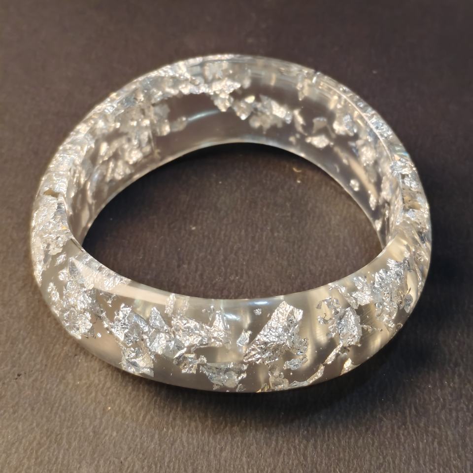 Pure Handcrafted Clear Epoxy Resin Silver Flake Bracelet Luxury Sparkling Silver Foil Acrylic Round Bangle Accessories Durable